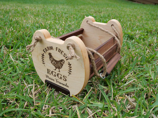 Cesto de armazenamento de cozinha de fazenda rústica com logotipo personalizado Impressão de cesto de ovos de madeira