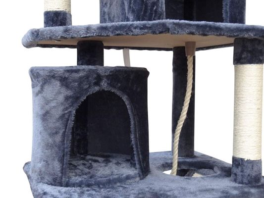 Mobiliário de sala de estar cinza escuro 4 plataformas 64 polegadas árvore de gato com 2 camas cubos casa de jogos