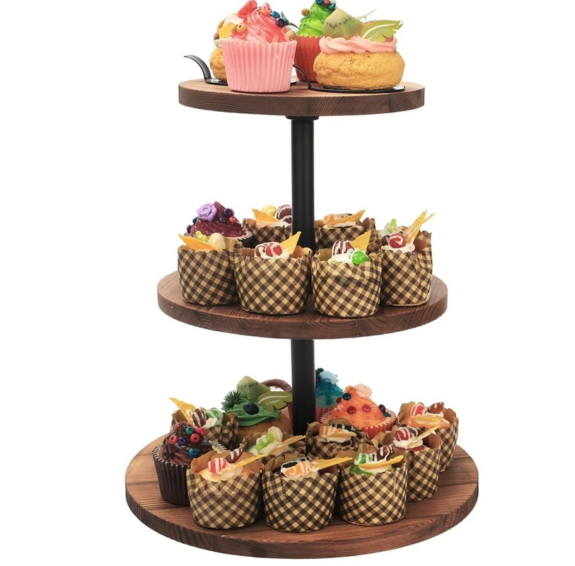 Taça de servir bolinhos de madeira para festas de chá de casamento de aniversário 202407