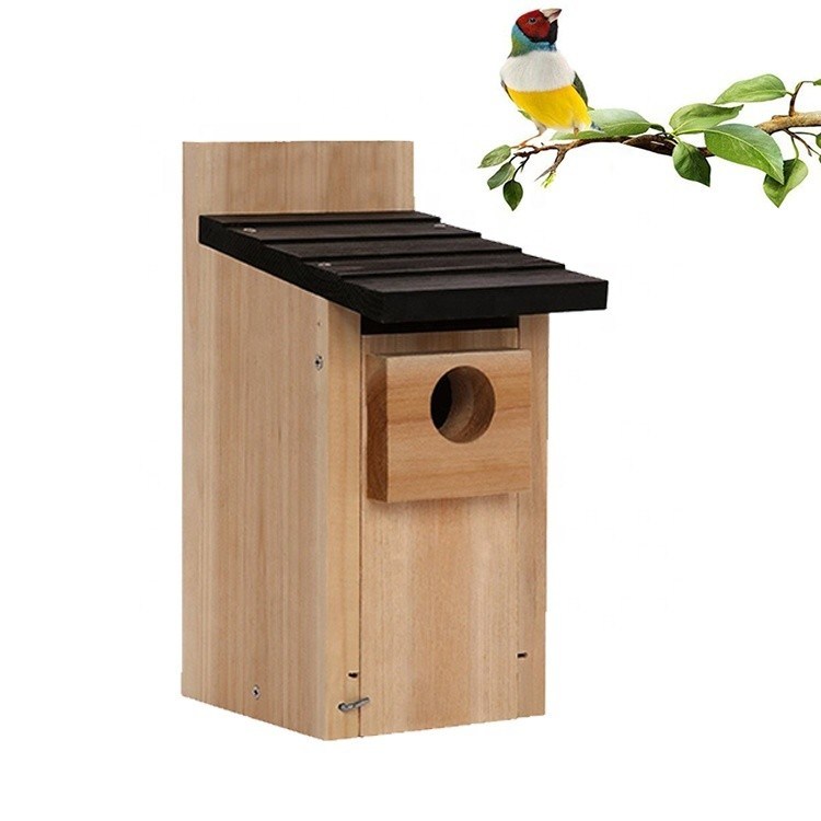 Casa de pássaros de madeira pendurada ao ar livre com impressão de gravura a laser Durável e elegante