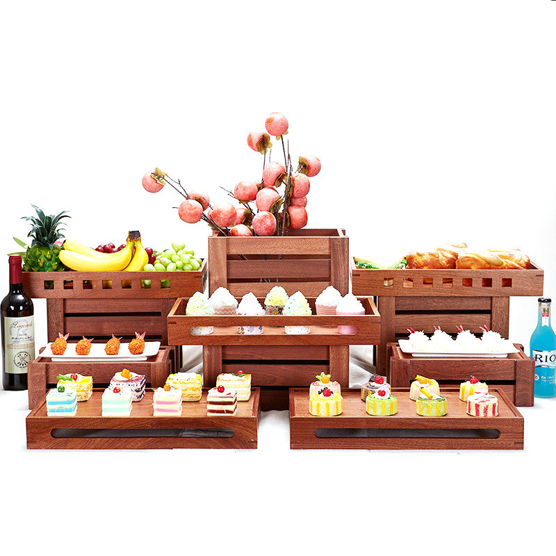 Logotipo personalizável aceitável 3 camadas de bolo de madeira de frutas para sobremesa