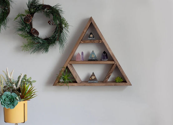Design minimalista Prateleira de parede triangular de madeira Prateleiras de display de cristal para armazenamento em casa