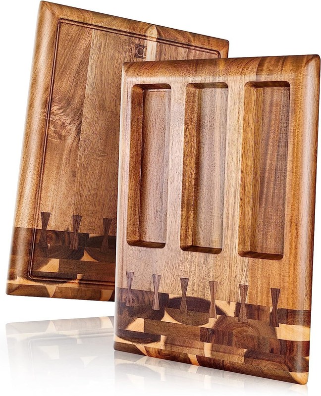 Tabela de corte de madeira ecológica com ranhuras de suco e recipientes removíveis
